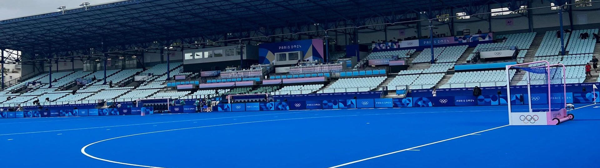 El campo de césped azul del Polideportivo Municipal Virgen del Carmen–Beteró, creado en 2008, fue la primera plataforma de todo el mundo de este color. París 2024 volverá a apostar por un campo azul de hockey para los siguientes JJOO.