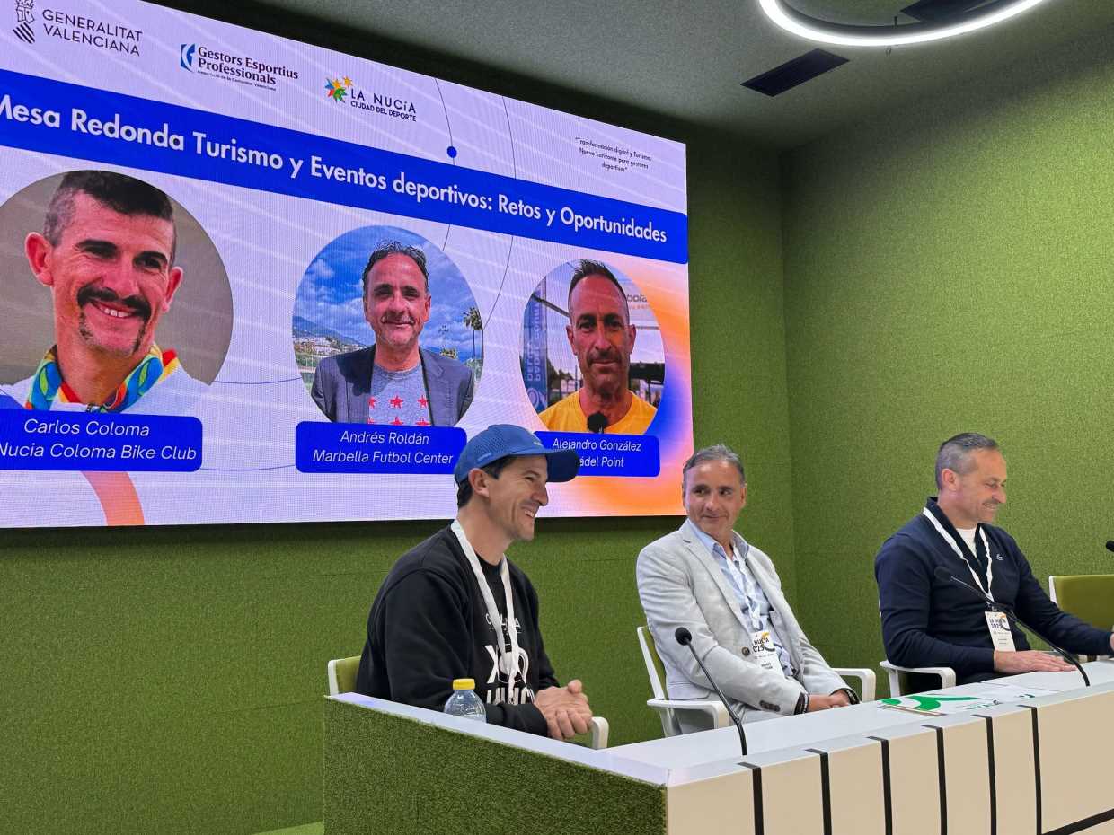 A continuación, se desarrolló una Mesa Redonda sobre “Turismo y Eventos Deportivos: Retos y Oportunidades”, en el que intervinieron Andrés Roldán, gerente de La Nucía Football Center, Alejandro González, gerente de Padelpoint La Nucía y Carlos Coloma, director de la Escuela de Mtb “La Nucía Coloma Bike Club” y manager del equipo UCI “BH Coloma Team”, donde explicaron los desafíos y oportunidades que presenta el sector del turismo deportivo en la actualidad.