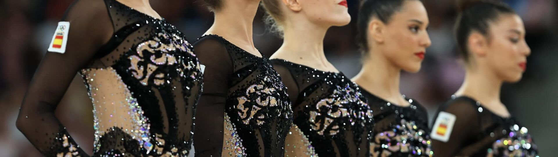 Tras el debut de las gimnastas individuales Polina Berezina y Alba Bautista, que finalizaron en la 15º y 20º posición en la fase clasificatoria del concurso completo individual, el conjunto nacional no pudo confirmar el brillante ciclo sobre el tapiz parisino.